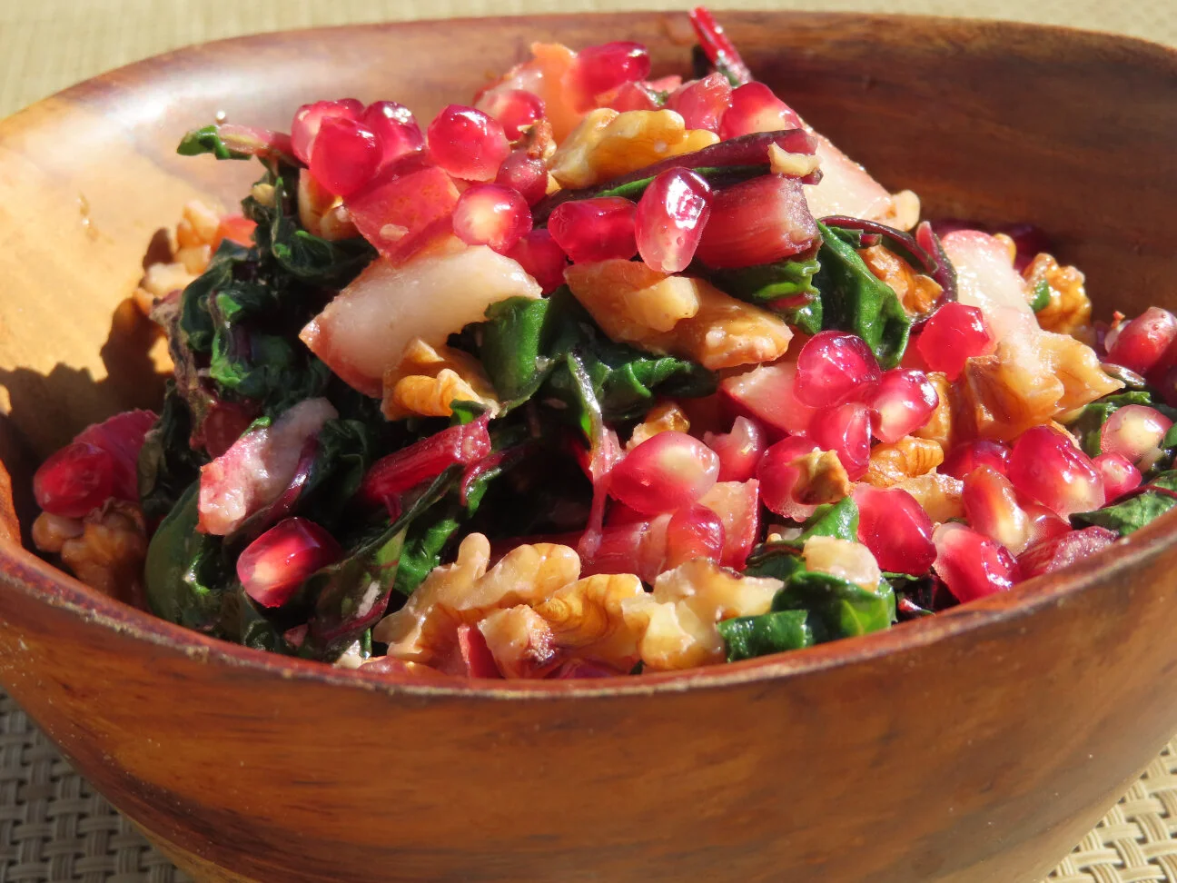 Swiss chard is delicious. Mildly bitter, it is packed with nutrients and that great color to boot.